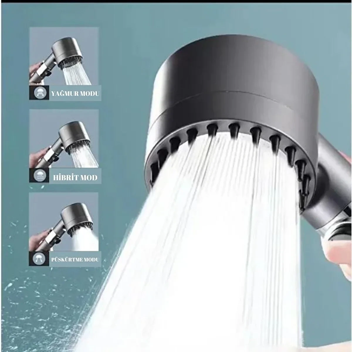 Duş Başlığı 3 Farklı Mod Masajlı Başlık Yeni Nesil Masaj Uçlu Filtreli Stop Tuşlu 3 Fonksiyonlu Su Tasarruflu Basınçlı Duş Başlığı