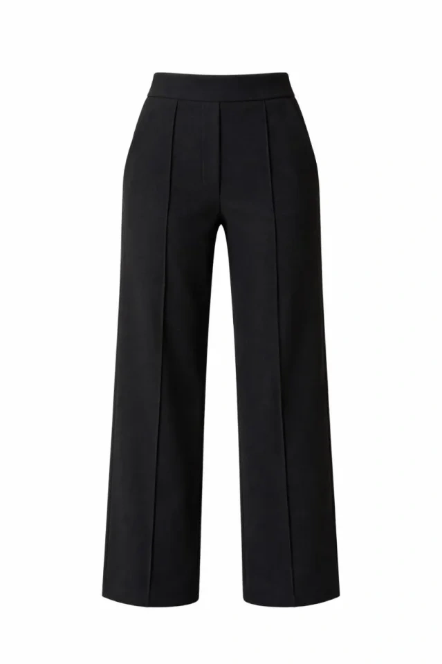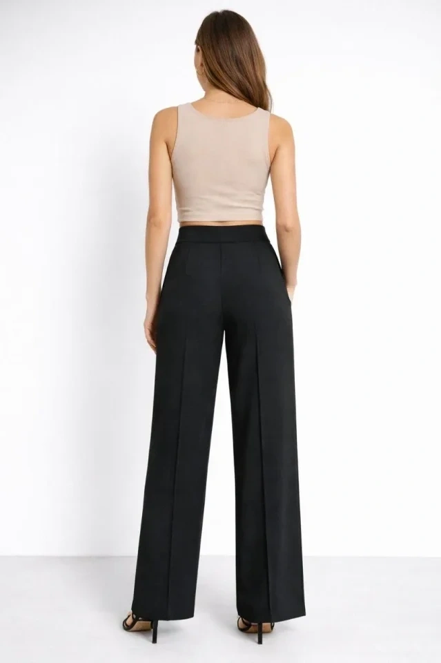 Yüksek Bel Palazzo Pantolon Çima Dikişli Bol Paça Akıcı Kumaş Günlük Ve Ofis Şıklığı - Siyah