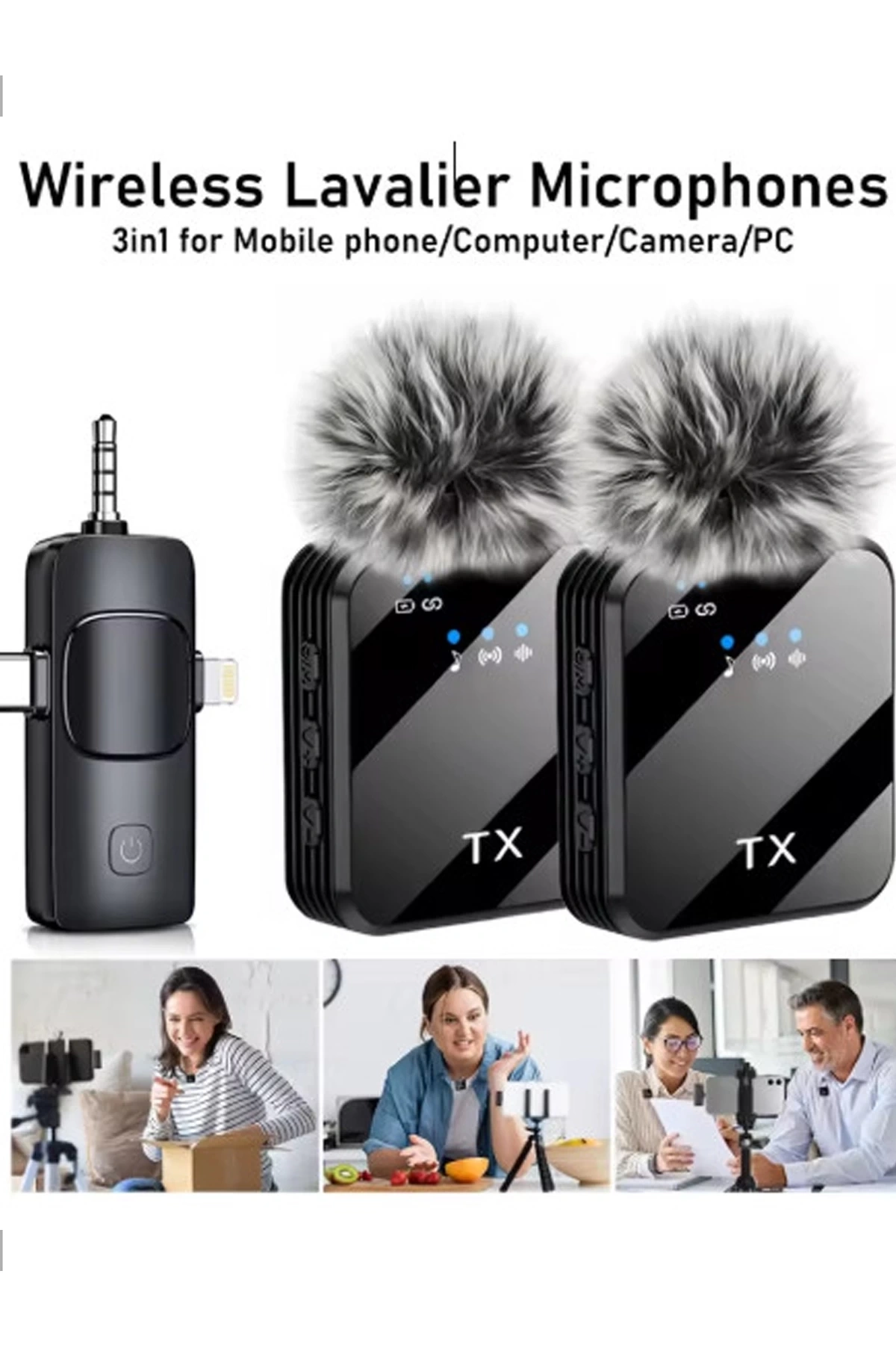 Yüksek Kalite Profesyonel 3 In 1 Kablosuz Taşınabilir Yaka Mikrofonu Youtube Facebook Tiktok ( )