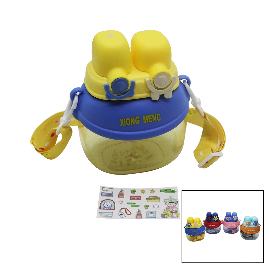 YÜZ MODELİ - 2 KİLİTLİ KAPAK RENKLİ MİKA KRİSTAL SULUK MATARA PİPETLİ - NAYLON ÇANTALI - ASKILI 1280ML (4940)
