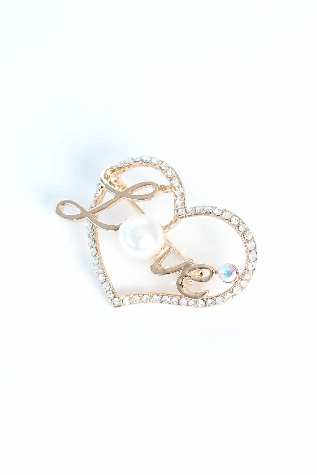 Gold renk metal kalp tasarım Zirkon Taşlı Metal Broş